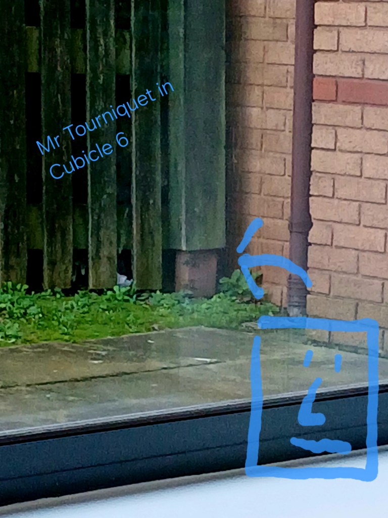 Mr Tourniquet in cubicle 6 watches the birds from his window.